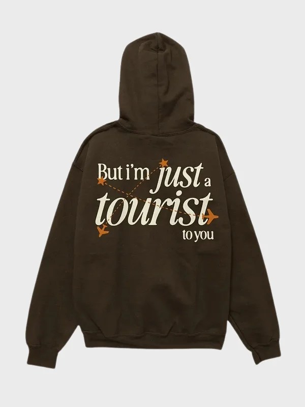 Designed for versatility, the But I’m Just A Tourist hoodie pairs seamlessly with oversized denim, cargos, or layered under a structured jacket for a balanced street-style look. The adjustable hood and spacious kangaroo pocket add practicality, making it ideal for cooler evenings, solo walks, or casual city days.